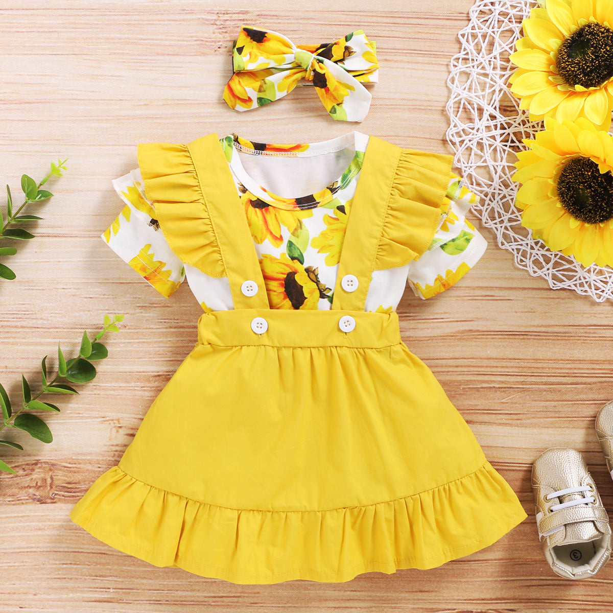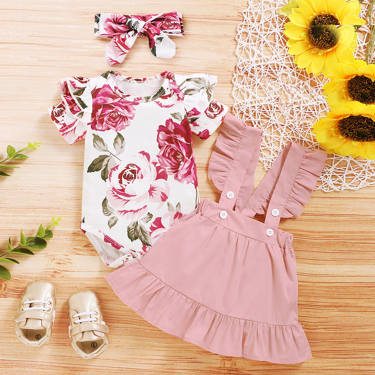 3-piece set short-sleeved floral blouse + lace suspender skirt